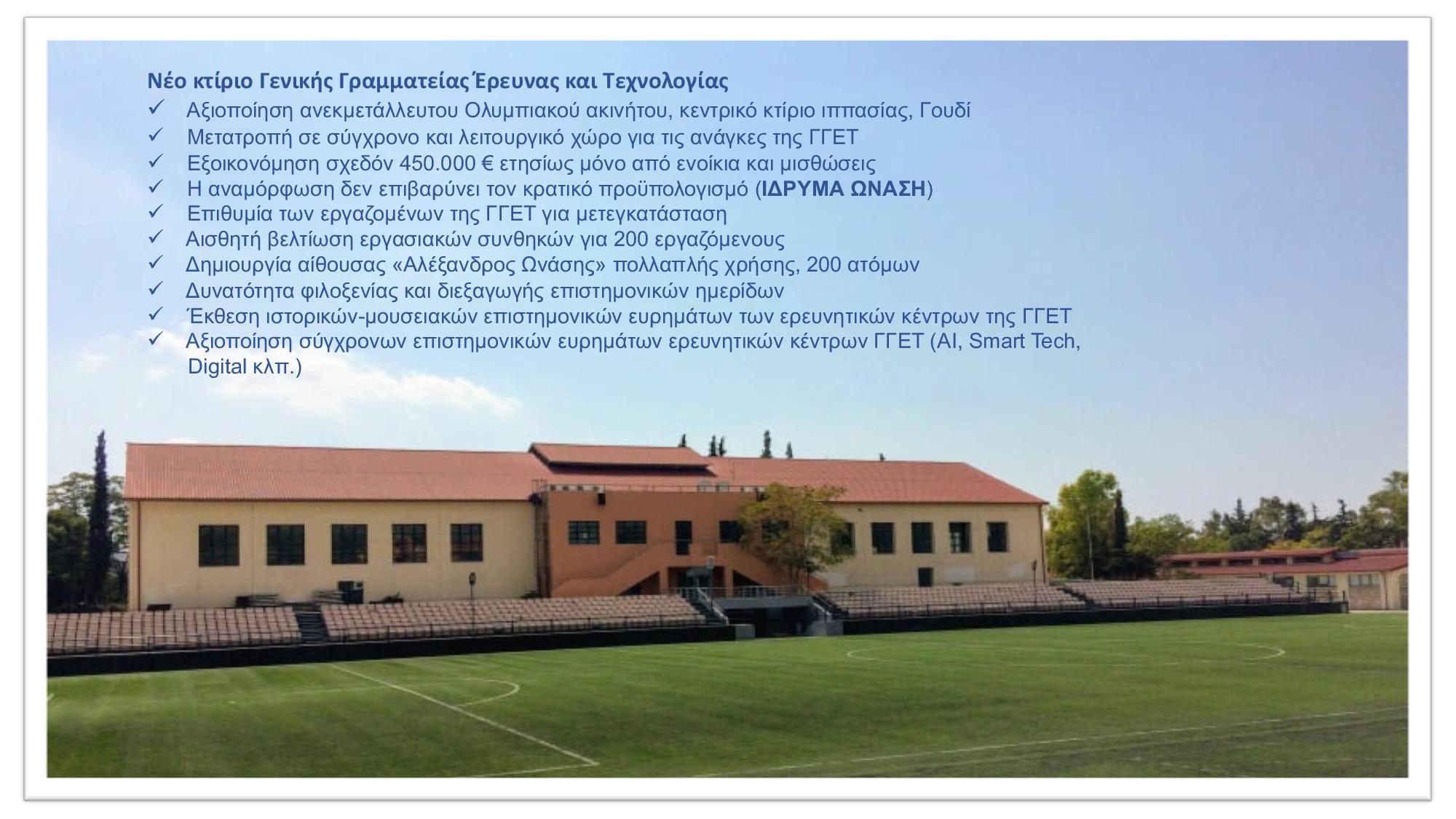 ● Η μετεγκατάσταση θα γίνει στο Κεντρικό Κτίριο Ιππασίας στο Γουδί αξιοποιώντας έτσι με τον καλύτερο τρόπο ένα ανεκμετάλλευτο Ολυμπιακό ακίνητο.