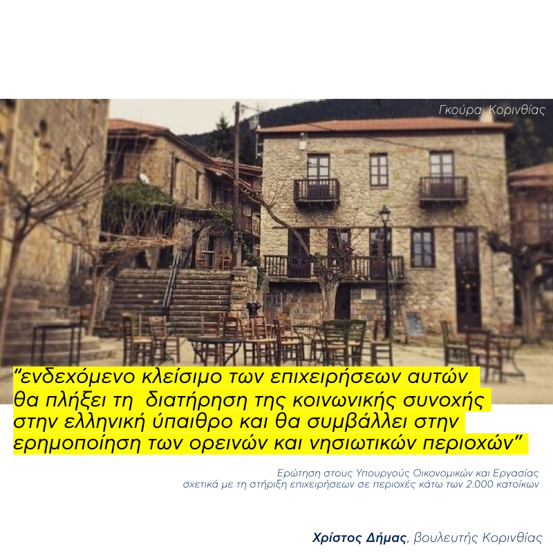 ΕΡΩΤΗΣΗ Στήριξη επιχειρήσεων σε περιοχές κάτω των 2.000 κατοίκων