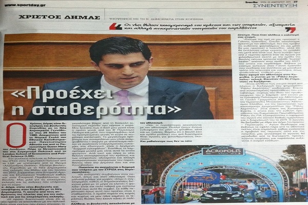 Είναι αλήθεια πως για μια σειρά από λόγους η διεξαγωγή του φημισμένου Ράλλυ Ακρόπολις κινδύνευσε. Έπειτα από συντονισμένες προσπάθειες που καταβάλαμε –κυρίως του ίδιου του Πρωθυπουργού του κ. Σαμαρά- από κοινού με το Υπουργείο Πολιτισμού και Αθλητισμού, την Γενική Γραμματεία Αθλητισμού και την Ομοσπονδία Μηχανοκίνητου Αθλητισμού Ελλάδος, για την τακτοποίηση των οικονομικών εκκρεμοτήτων του Ράλλυ Ακρόπολις 2014 έναντι της Eurosport Events, η οποία έχει την ευθύνη προώθησης του Ευρωπαϊκού Πρωταθλήματος Ράλλυ της FIA, εξασφαλίσθηκε η παραμονή του αγώνα στο σχετικό διεθνές ημερολόγιο και η διοργάνωσή του το 2015. Ο αγώνας θα διεξαχθεί με έδρα τον Δήμο Λουτρακίου – Περαχώρας – Αγίων Θεοδώρων και βεβαίως τα οφέλη πέρα από το αθλητικό σκέλος είναι σημαντικά καθώς ενισχύεται η προβολή της περιοχής αλλά και της πατρίδας μας γενικότερα (ο αγώνας θα μεταδοθεί από το Eurosport), προσελκύονται τουρίστες και αυξάνεται η εισροή εσόδων.