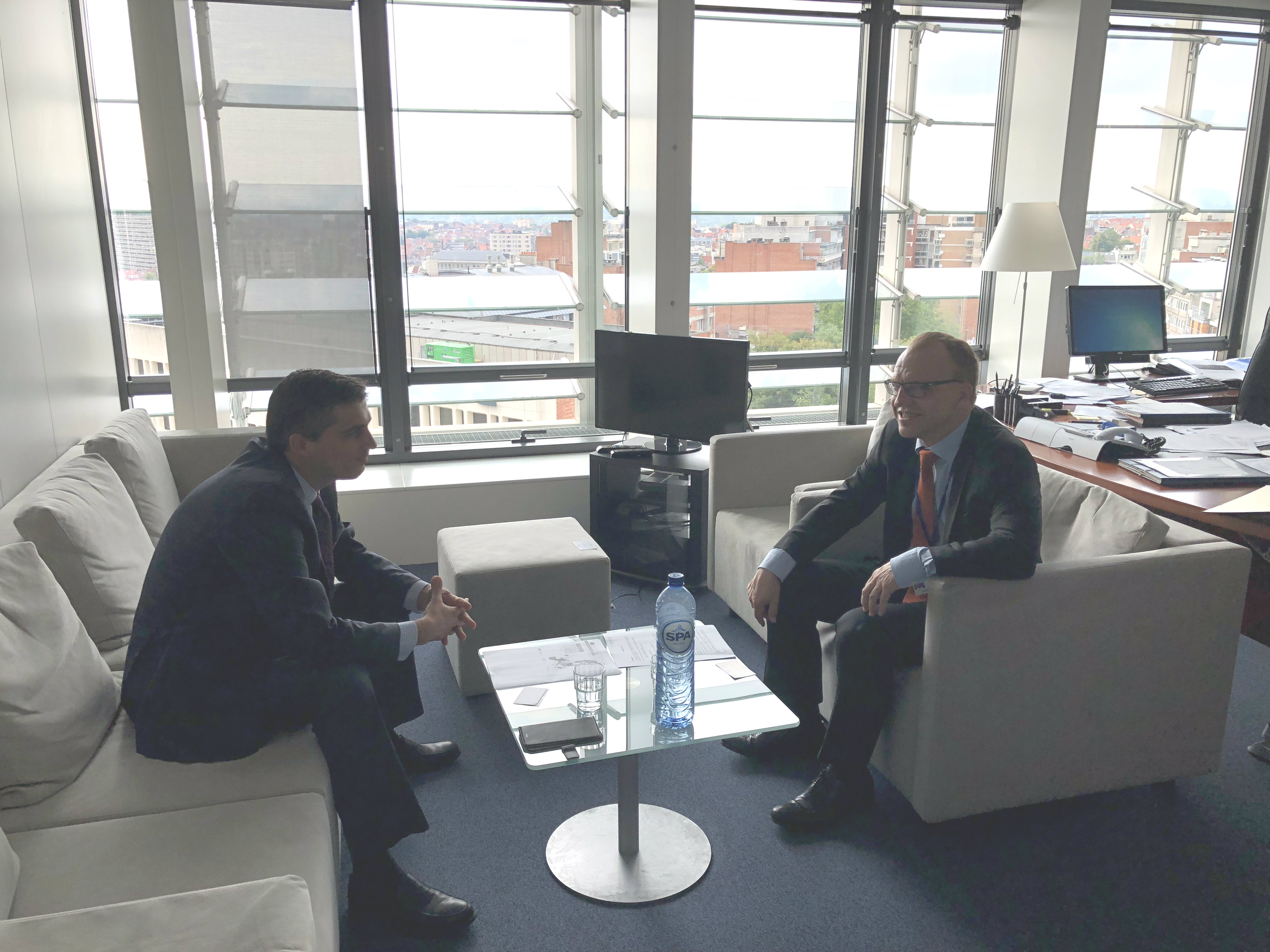 Συνάντηση στις Βρυξέλλες με τον επικεφαλής του γραφείου του Αντιπροέδρου της Ευρωπαϊκής Επιτροπής και αρμόδιου Επιτρόπου Βιομηχανίας και Επιχειρηματικότητας της Ευρωπαϊκής Ένωσης κ. Risto Artjoki πραγματοποίησε ο Βουλευτής Κορινθίας κ. Χρίστος Δήμας. Κατά τη διάρκεια της συνάντησης συζητήθηκε η πορεία της ελληνικής οικονομίας και το πως οι ευρωπαϊκοί πόροι θα μπορέσουν να αποτελέσουν μοχλό ανάπτυξης για τη χώρα.