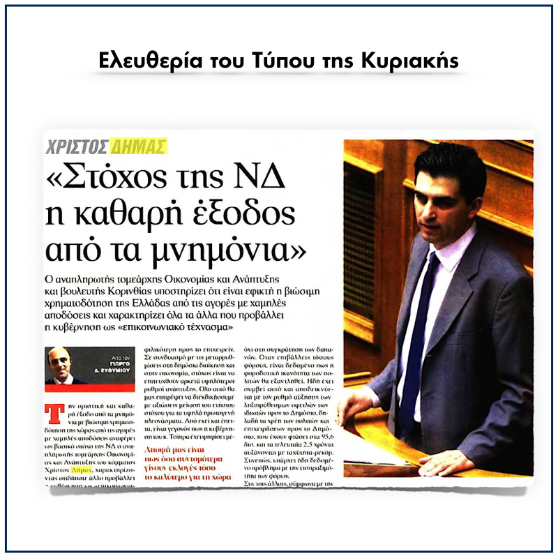 Συνέντευξη στο δημοσιογράφο Γ.Ευθυμίου για την εφημερίδα Ελευθερία του Τύπου της Κυριακής.